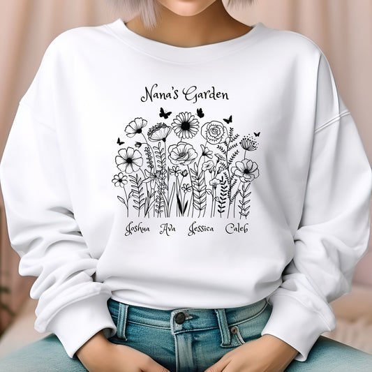 Personalized Nana's Garden Floral Sweatshirt - Ideal Grandma Gift with Grandkids Names: Unique & Sentimental