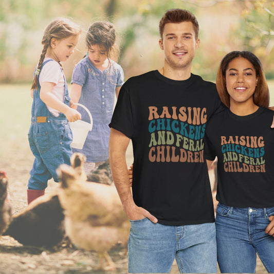 Raising Chickens and Feral Children Unisex Heavy Cotton Tee Farm Life Barn Shirt Gift for mom Gift for Dad