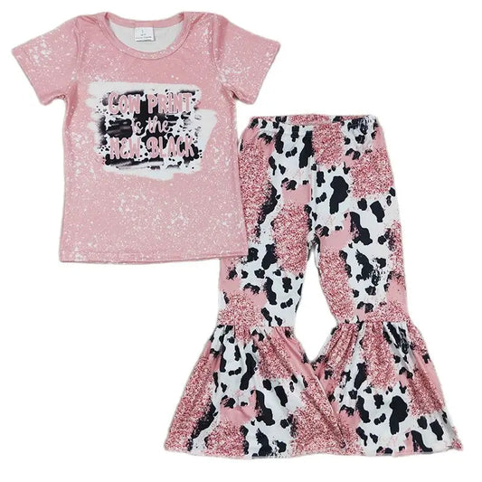 Toddler Western Outfit Baby Girl Short Sleeve Shirt Bell Bottom Pants Children Clothes Sets