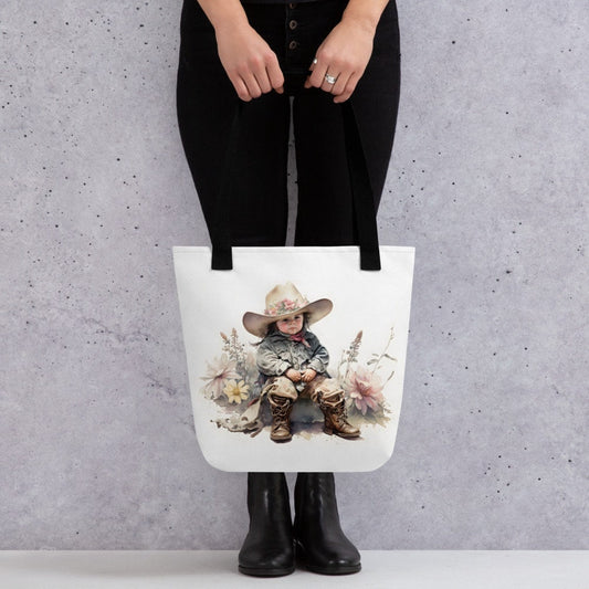 Tote bag little cowgirl and vintage floral watercolour style Mothers Day gift, Best friend gift, Farmers market tote