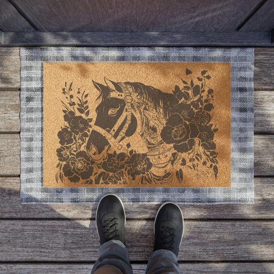 Steampunk Horse Doormat, Industrial Horse Mat for Entryway, Steampunk Home Decor, Rustic Farmhouse Welcome Mat, Horse Lover Gift, Unique