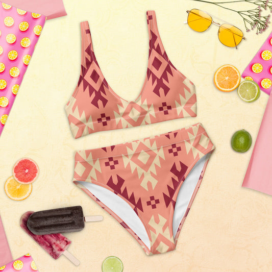 Boho Chic Pink Aztec Bikini: Embrace Western Vibes in This High-Waisted Swimwear