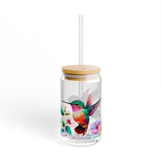 Elegant Hummingbird Design - 16 oz Glass Cup for Nature Lovers