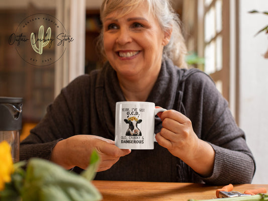 Yeah I have OCD Old Cranky Dangerous Cow Design, Funny Cow Mug, Cow Lover Gift, Funny Coffee Cup (11oz, 15oz, 20oz)