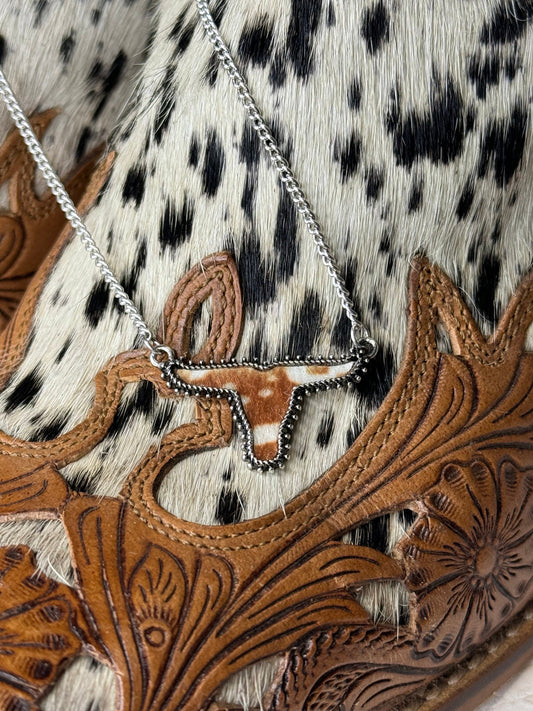 Faux Brown & White Cowhide Pendant Necklace | Western Jewelry | Cowgirl Accessories | Coastal Cowgirl | Rodeo Accessories