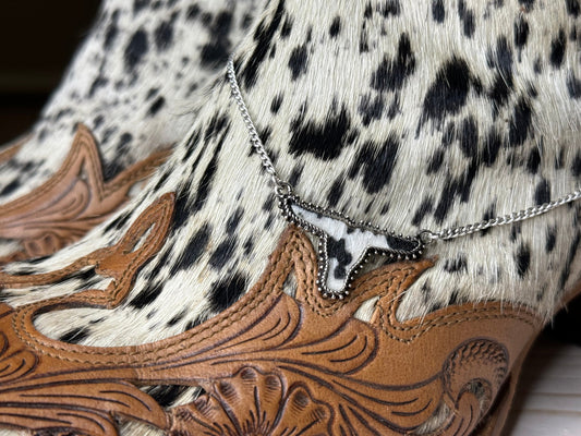 Faux Black & White Cowhide Pendant Necklace | Western Jewelry | Cowgirl Accessories | Coastal Cowgirl | Rodeo Accessories