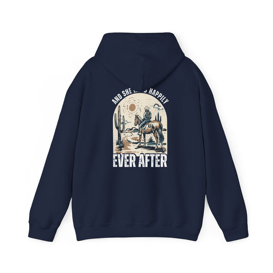 Horse and Rider Graphic Desert Scene Hoodie, Women's Pullover Sweatshirt for Equestrian, And She Lived Happily Ever After, Horse lover gift
