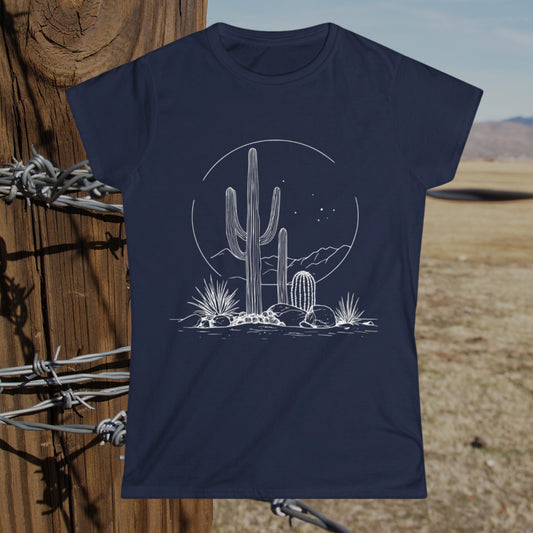 Western Desert Moon Women's Tee, Cowgirl Graphic Shirt, Southwest Style Top, Mountain Cactus Fashion Tee, Vintage Sunset T-Shirt, Boho