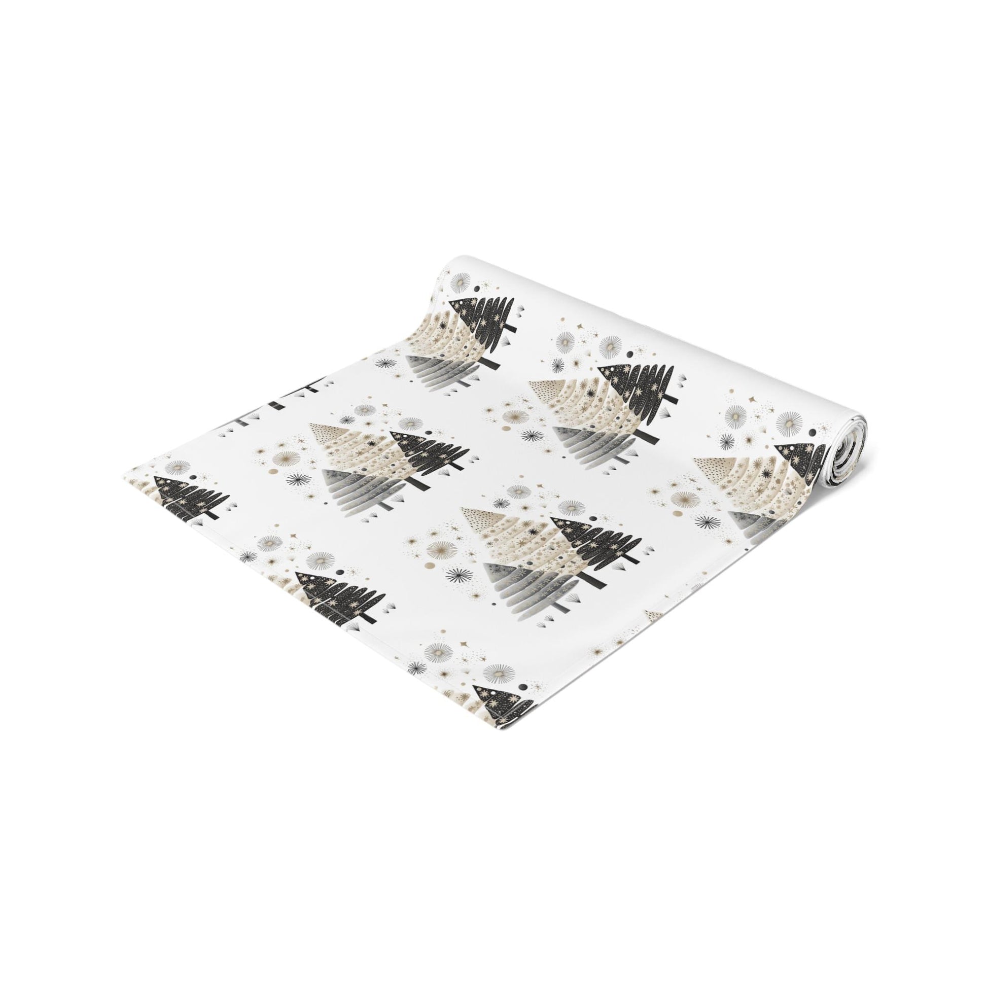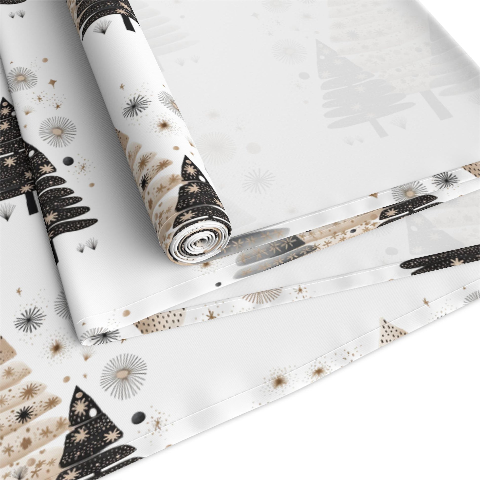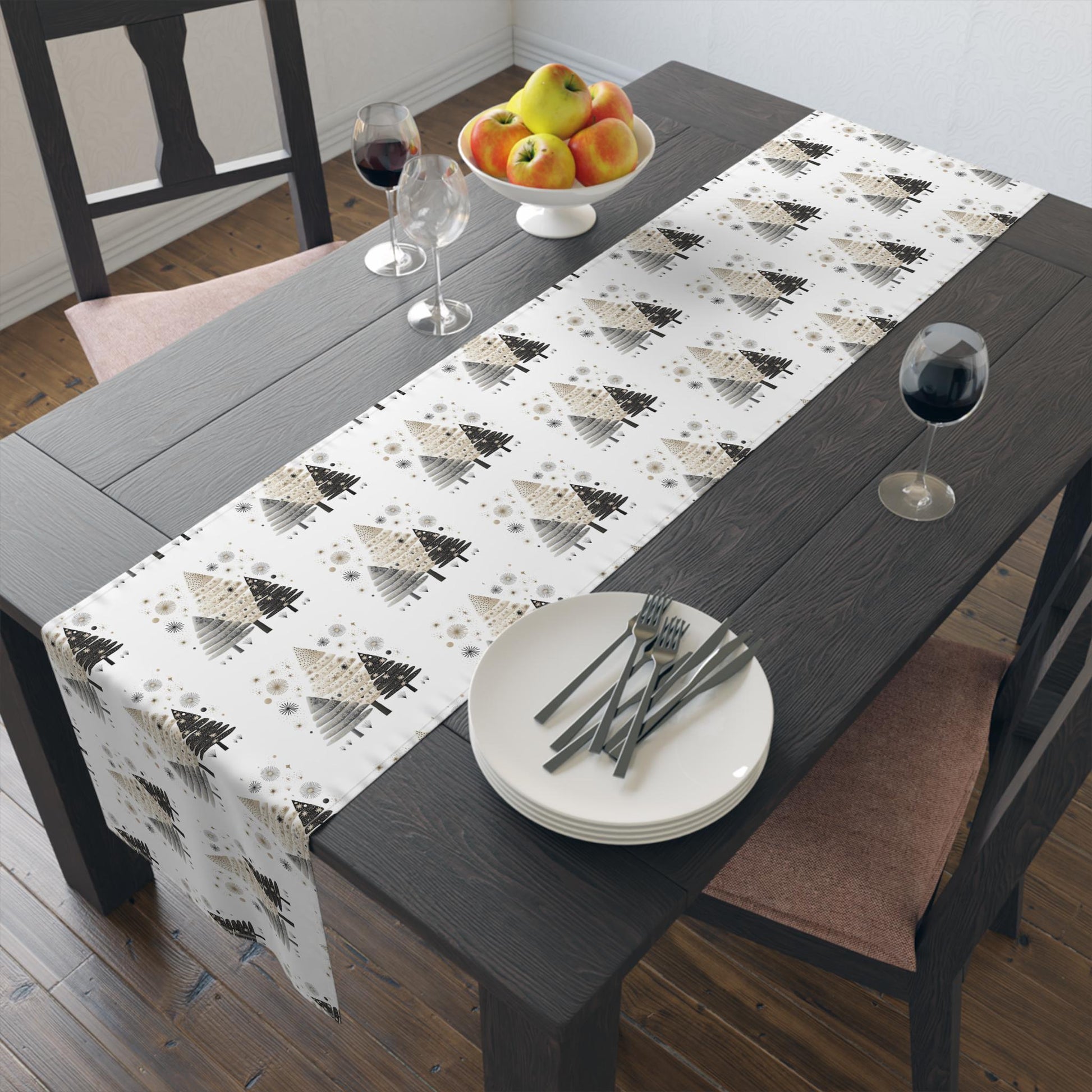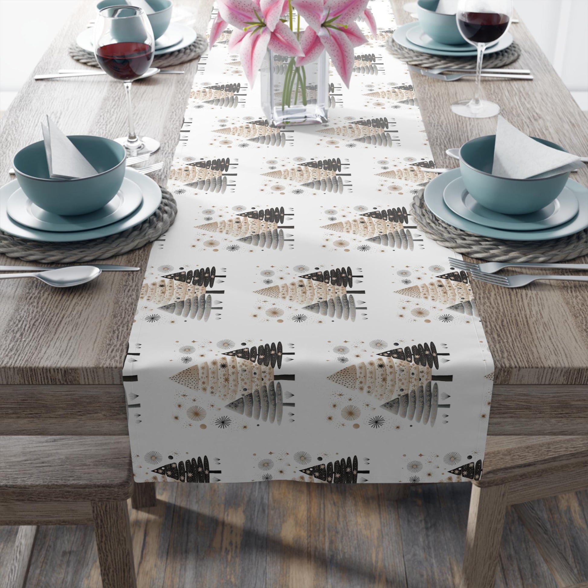 Boho Christmas Tree Table Runner, Holiday Table Decor, Festive Dining Decoration, Bohemian Home Accent, Xmas Cotton Runner
