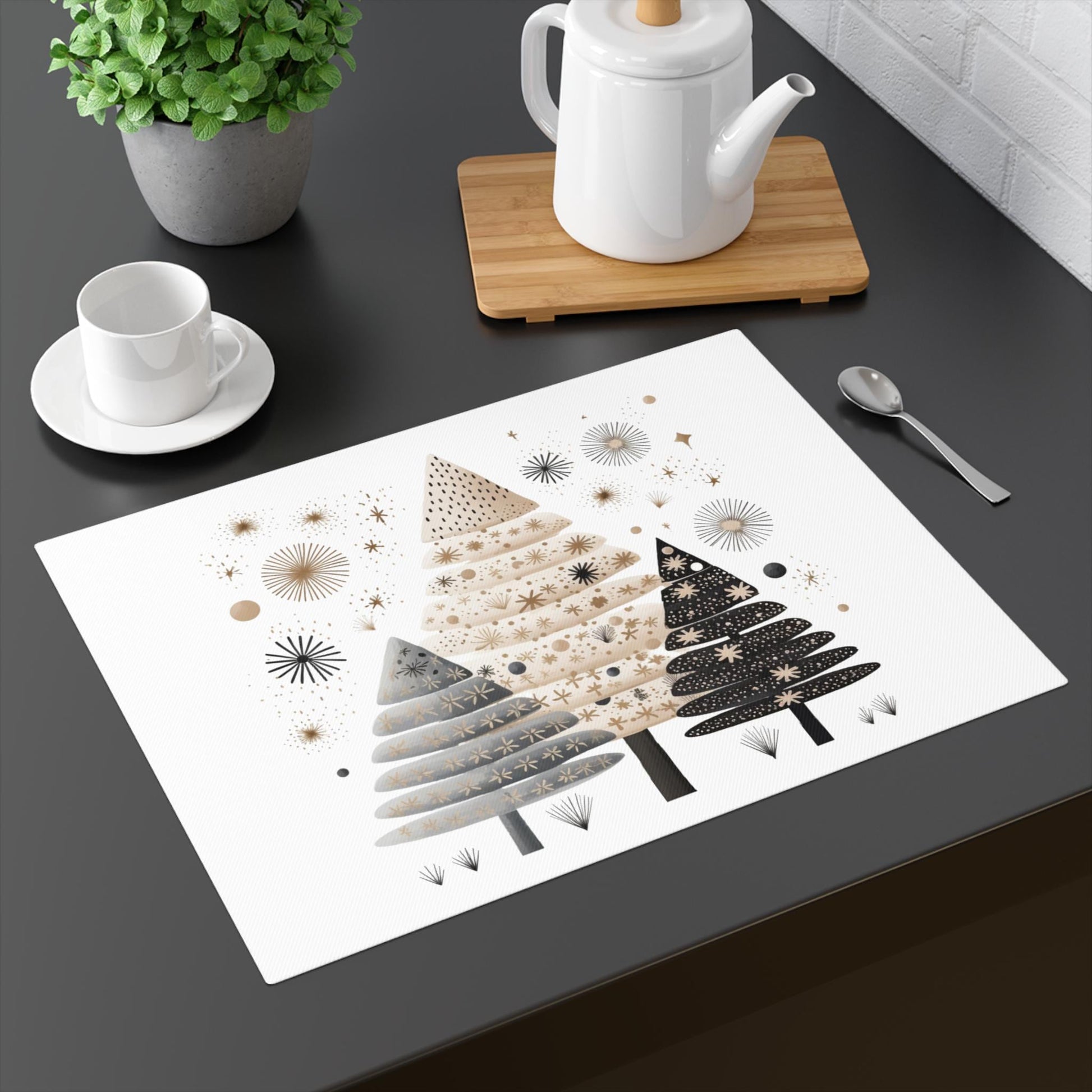Boho Christmas tree design placemat, perfect for adding a festive touch to your dining table during the holiday season. This placemat is relevant to individuals who enjoy boho decor and Christmas celebrations. Each placemat is sold individually.