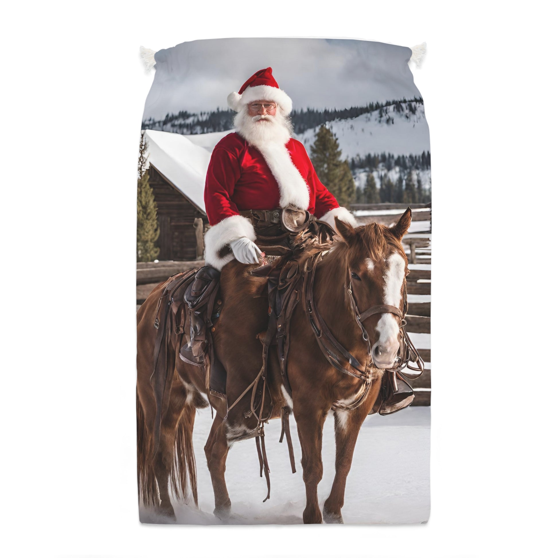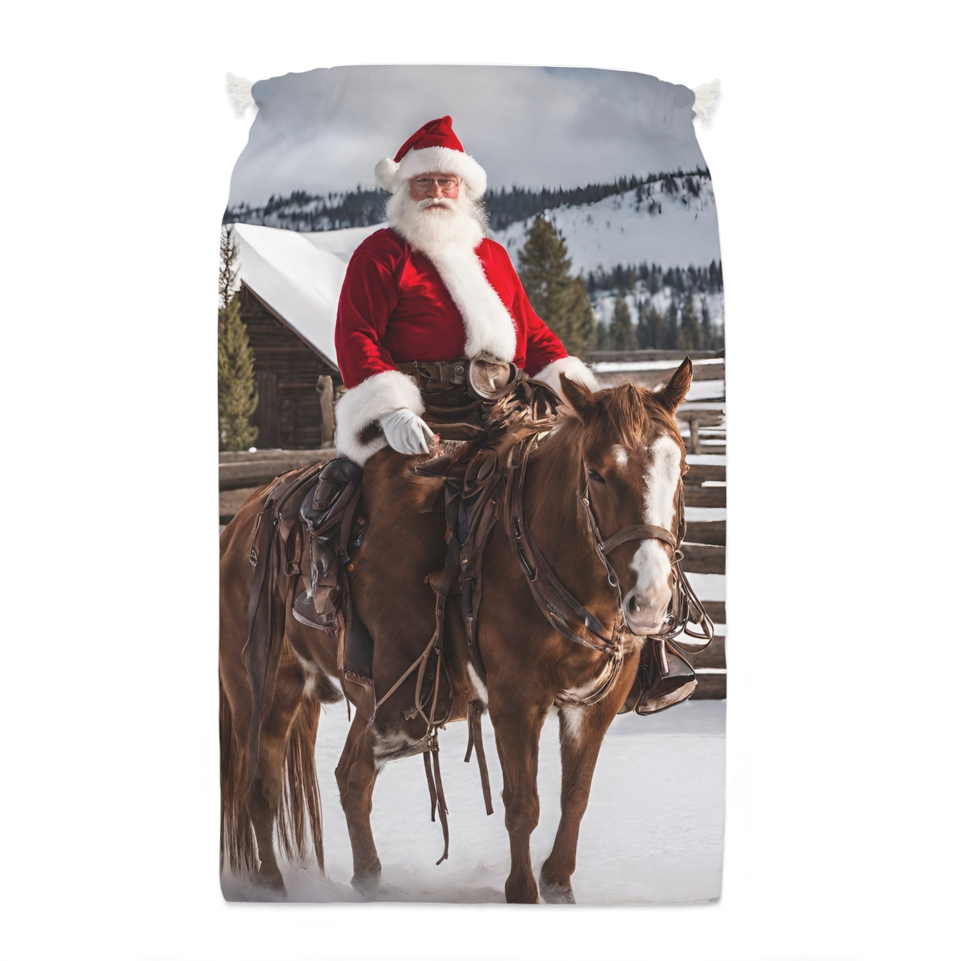 Put a custom touch to Christmas with a personalized Santa Sack. Purchase a design already complete or message us to personalize with your own picture. Equipped with a drawstring closure, this lightweight Santa bag can hold gifts inside and comes with a vibrant print.